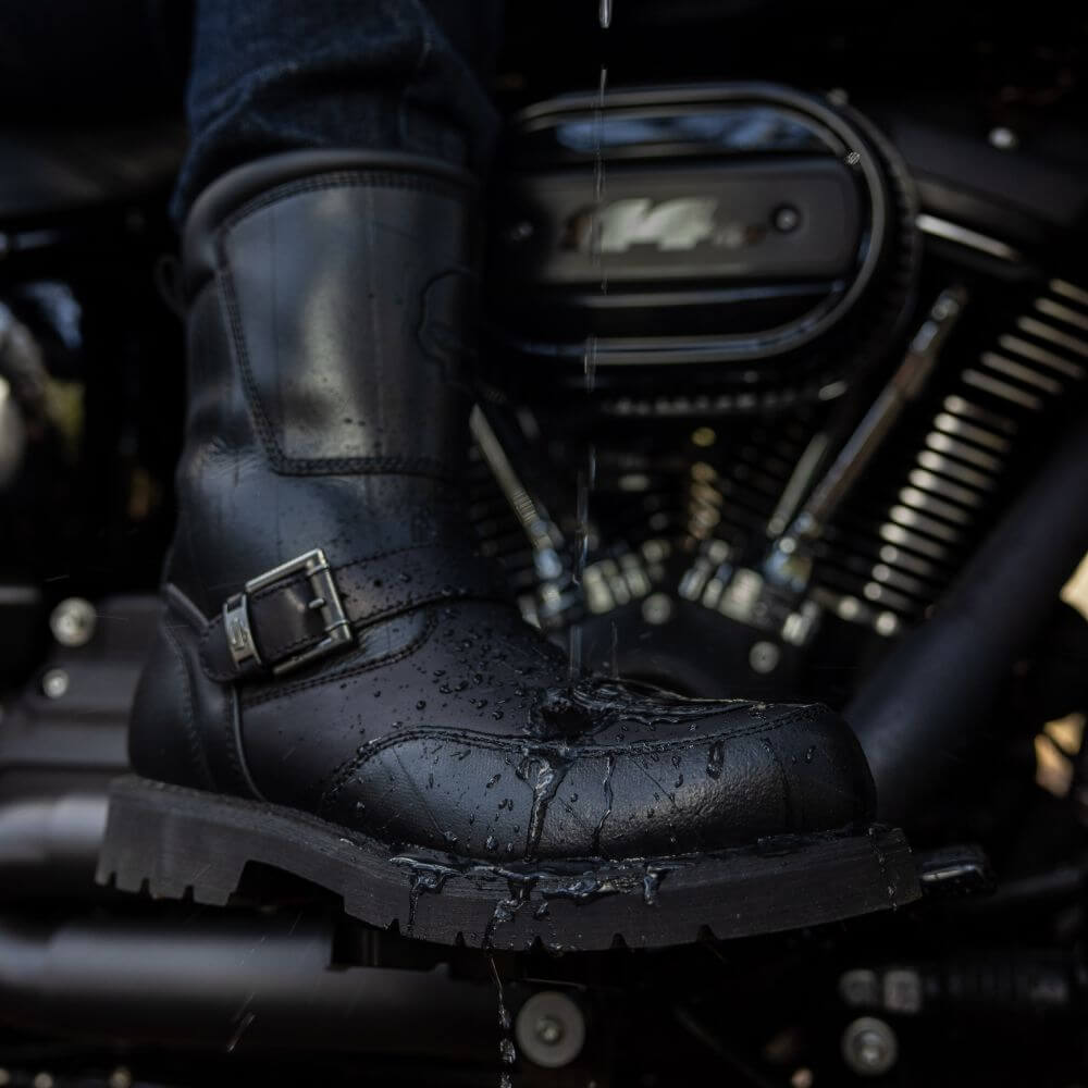 The Harley-Davidson Shift Ride CE WP Boots in black are the ultimate footwear for discerning riders seeking both style and performance. Crafted from durable, waterproof TecTuff abrasion-resistant leather, these boots provide exceptional protection against the elements while boasting a sleek, textured finish that stands up to the rigours of the road. Ideal for long rides or daily commuting, they combine superior comfort with rugged durability, offering riders a reliable and stylish choice for any journey.