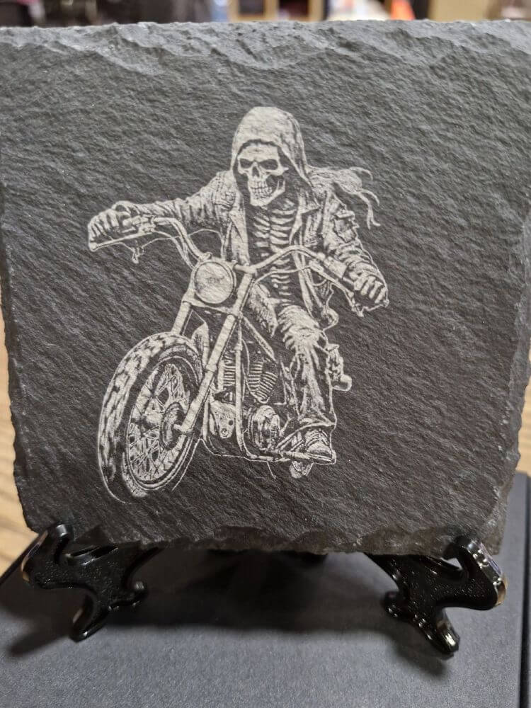 Bring attitude and craftsmanship into your space with the SD Designs Ghost Rider Coaster. Hand-crafted, durable, and beautifully packaged, it’s more than just a drink rest—it’s a tribute to individuality, passion, and classic biker culture.